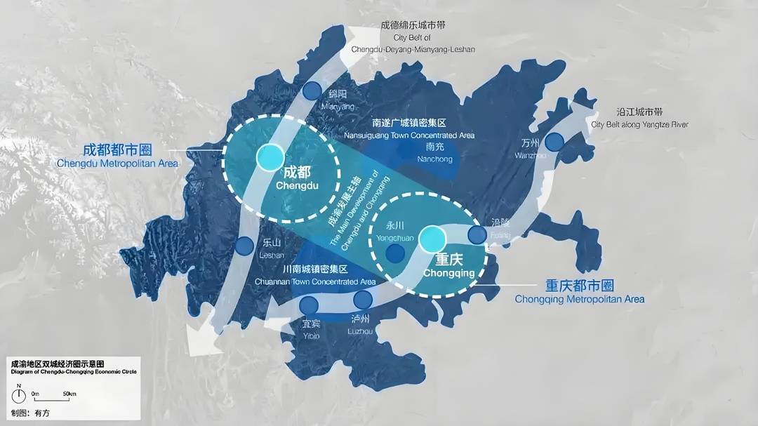 成渝地区双城经济圈透露图。