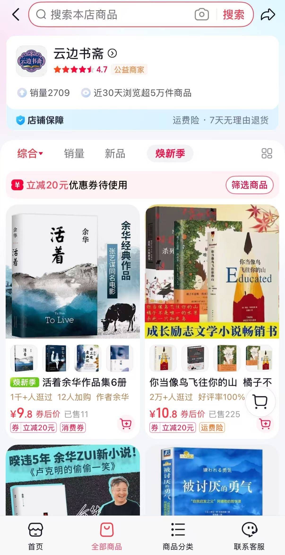4月12日,潇湘晨报·晨视频记者稽查该店铺,发现所售卖的竹素价钱多为一二十元独揽,余华创作的长片演义《在世》售价惟有9块8,商品页面也未表明是影印版。随后,记者考虑该店铺所售竹素是否是正版,商家回复“影印版,复刻的”。