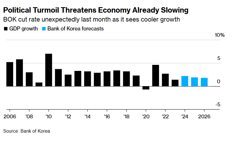 政事飘荡恫吓到也曾放缓的韩国经济——由于以为经济增长放缓,韩国央行上月或然降息