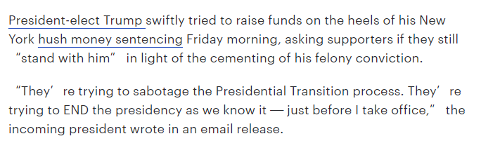 尔后,由于特朗普参加2024年总统竞选并告捷当选,那么看成当选总统应该享有如何的豁免权影响着此案的判决。特朗普方面征引最高法院2024年7月的总统豁免权裁决,观点应驱除有罪裁决和这一案件。